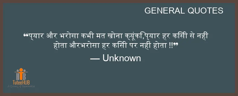 प्यार और भरोसा कभी मत खोना क्यूंकि,प्यार हर किसी से नहीं होता औरभरोसा हर किसी पर नहीं होता !!
