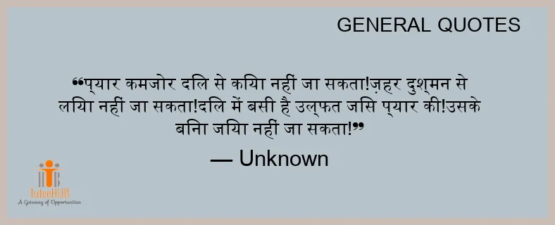 प्यार कमजोर दिल से किया नहीं जा सकता!ज़हर दुश्मन से लिया नहीं जा सकता!दिल में बसी है उल्फत जिस प्यार की!उसके बिना जिया नहीं जा सकता!
