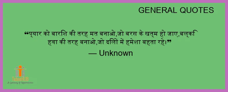प्यार को बारिश की तरह मत बनाओ,जो बरस के खत्म हो जाए,बल्कि हवा की तरह बनाओ,जो दिलों में हमेशा बहता रहे।