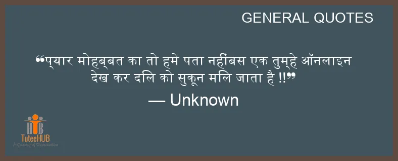 प्यार मोहब्बत का तो हमे पता नहींबस एक तुम्हे ऑनलाइन देख कर दिल को सुकून मिल जाता है !!