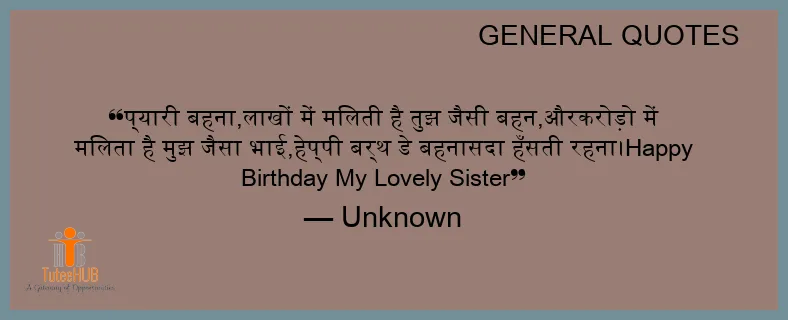 प्यारी बहना,लाखों में मिलती है तुझ जैसी बहन,औरकरोड़ो में मिलता है मुझ जैसा भाई,हेप्पी बर्थ डे बहनासदा हँसती रहना।Happy Birthday My Lovely Sister