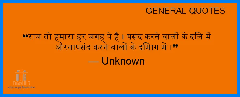 राज तो हमारा हर जगह पे है । पसंद करने वालों के दिल में औरनापसंद करने वालों के दिमाग में ।