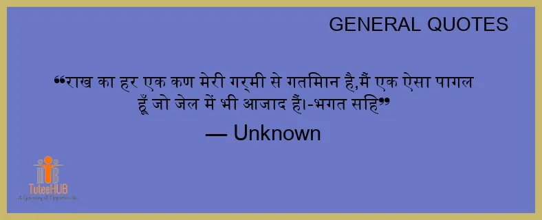 राख का हर एक कण मेरी गर्मी से गतिमान है,मैं एक ऐसा पागल हूँ जो जेल में भी आजाद हैं।-भगत सिंह
