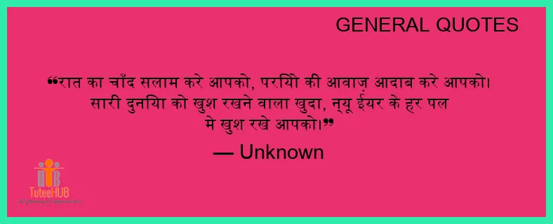 रात का चाँद सलाम करे आपको, परियो की आवाज़ आदाब करे आपको। सारी दुनिया को खुश रखने वाला खुदा, न्यू ईयर के हर पल मे खुश रखे आपको।