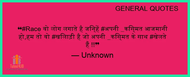 #Race वो लोग लगाते है जिन्हें #अपनी _किस्मत आजमानी हो,हम तो वो #खिलाड़ी है जो अपनी _किस्मत के साथ #खेलते हैं !!