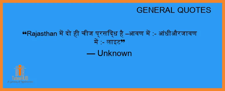 Rajasthan में दो ही चीज प्रसिद्ध है –आवण में :- आंधीऔरजावण में :- लाइट
