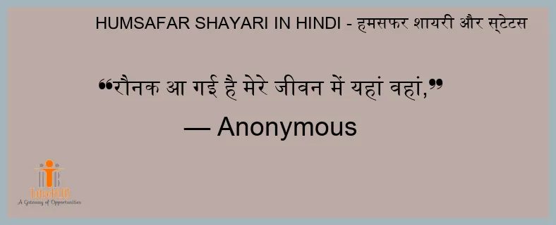 रौनक आ गई है मेरे जीवन में यहां वहां,