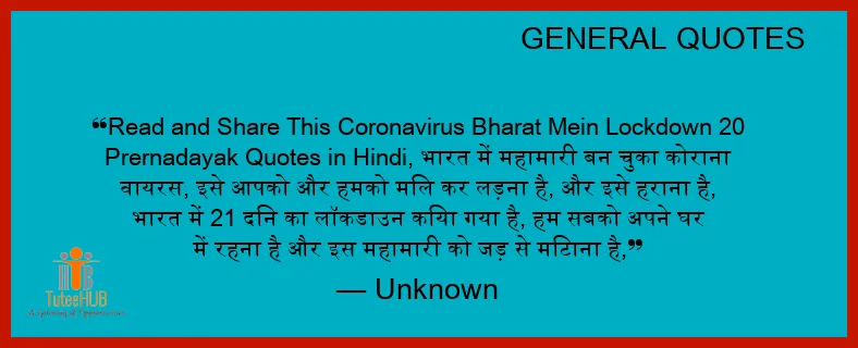 Read and Share This Coronavirus Bharat MEIN Lockdown 20 Prernadayak Quotes in Hindi, भारत में महामारी बन चुका कोराना वायरस, इसे आपको और हमको मिल कर लड़ना है, और इसे हराना है, भारत में 21 दिन का लॉकडाउन किया गया है, हम सबको अपने घर में रहना है और इस महामारी को जड़ से मिटाना है,