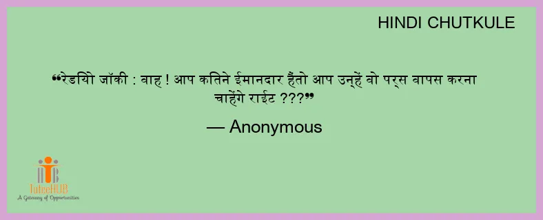 रेडियो जॉकी : वाह ! आप कितने ईमानदार हैंतो आप उन्हें वो पर्स वापस करना चाहेंगे राईट ???