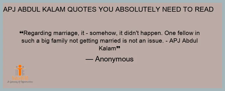 Regarding marriage, it - somehow, it didn't happen. One fellow in such a big family not getting married is not an issue. - APJ Abdul Kalam