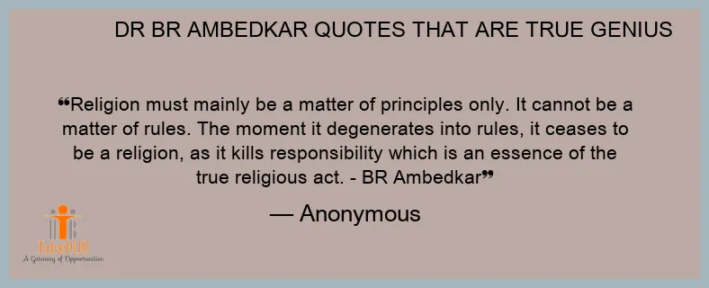 Religion must mainly be a matter of principles only. It cannot be a matter of rules. The moment it degenerates into rules, it ceases to be a religion, as it kills responsibility which is an essence of the true religious act. - BR Ambedkar