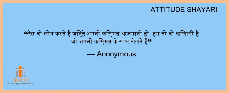 रेस वो लोग करते हैं जिन्हें अपनी किस्मत आजमानी हो, हम तो वो खिलाड़ी हैं जो अपनी किस्मत के साथ खेलते हैं