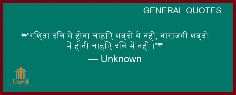 “रिश्ता दिल से होना चाहिए शब्दों से नहीं, नाराजगी शब्दों में होनी चाहिए दिल में नहीं ।”