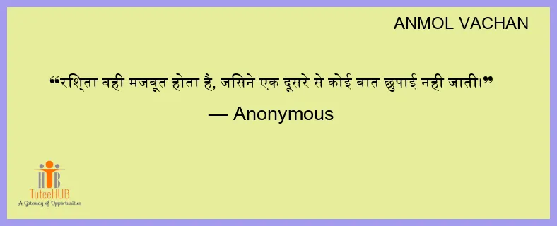 रिश्ता वही मजबूत होता है, जिसने एक दूसरे से कोई बात छुपाई नही जाती।