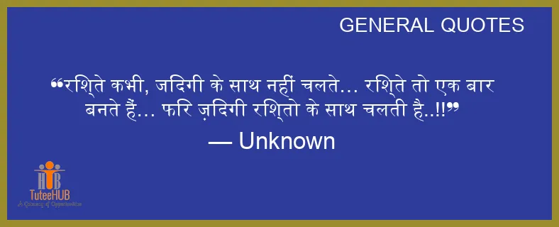 रिश्ते कभी, जिंदगी के साथ नहीं चलते… रिश्ते तो एक बार बनते हैं… फिर ज़िंदगी रिश्तो के साथ चलती है..!!