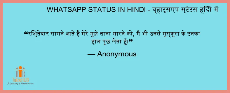 रिश्तेदार सामने आते हैं मेरे मुझे ताना मारने को, मैं भी उनसे मुस्कुरा के उनका हाल पूछ लेता हूँ।