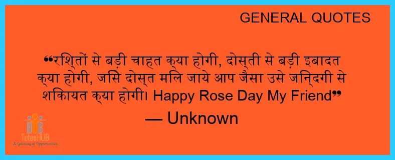 रिश्तों से बड़ी चाहत क्या होगी, दोस्ती से बड़ी इबादत क्या होगी, जिसे दोस्त मिल जाये आप जैसा उसे जिन्दगी से शिकायत क्या होगी। Happy Rose Day My Friend