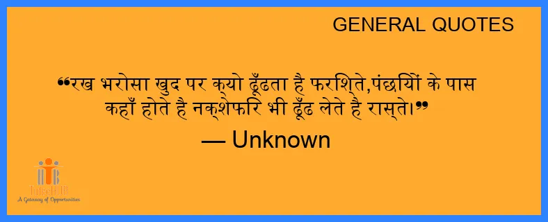 रख भरोसा खुद पर क्यो ढूँढता है फरिश्ते,पंछियों के पास कहाँ होते है नक्शेफिर भी ढूँढ लेते है रास्ते।