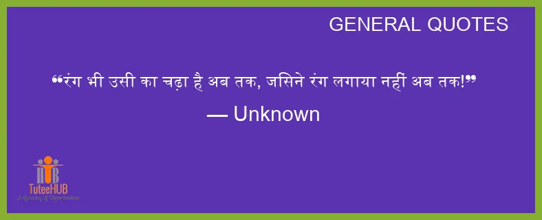 रंग भी उसी का चढ़ा है अब तक, जिसने रंग लगाया नहीं अब तक!