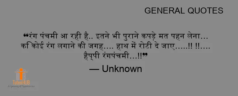 रंग पंचमी आ रही है.. इतने भी पुराने कपड़े मत पहन लेना… कि कोई रंग लगाने की जगह…. हाथ में रोटी दे जाए…..!! !!…. हैप्पी रंगपंचमी…!!