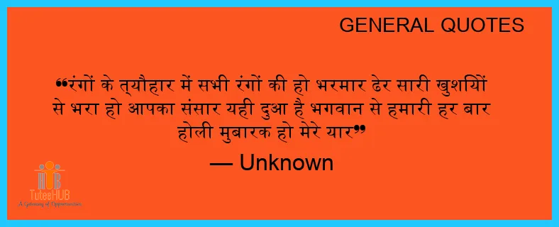 रंगों के त्यौहार में सभी रंगों की हो भरमार ढेर सारी खुशियों से भरा हो आपका संसार यही दुआ है भगवान से हमारी हर बार होली मुबारक हो मेरे यार