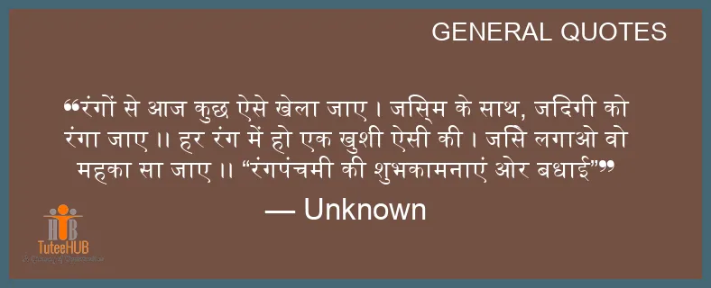 रंगों से आज कुछ ऐसे खेला जाए । जिस्म के साथ, जिंदगी को रंगा जाए ।। हर रंग में हो एक खुशी ऐसी की । जिसे लगाओ वो महका सा जाए ।। “रंगपंचमी की शुभकामनाएं ओर बधाई”