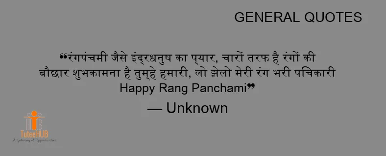 रंगपंचमी जैसे इंद्रधनुष का प्यार, चारों तरफ है रंगों की बौछार शुभकामना है तुम्हे हमारी, लो झेलो मेरी रंग भरी पिचकारी Happy Rang Panchami