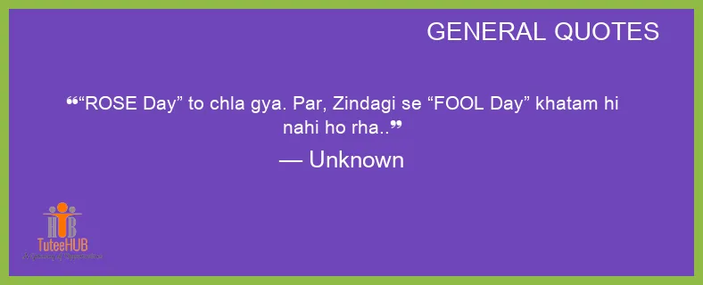 “ROSE Day” to chla gya. PAR, ZINDAGI se “FOOL Day” khatam HI NAHI ho rha..