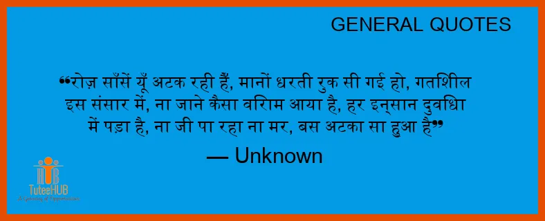 रोज़ साँसें यूँ अटक रही हैँ, मानों धरती रुक सी गई हो, गतिशील इस संसार में, ना जाने कैसा विराम आया है, हर इन्सान दुविधा में पड़ा है, ना जी पा रहा ना मर, बस अटका सा हुआ है
