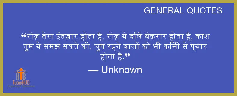 रोज़ तेरा इंतज़ार होता है, रोज़ ये दिल बेक़रार होता है, काश तुम ये समझ सकते की, चुप रहने वालों को भी किसी से प्यार होता है.