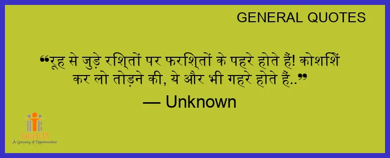 रूह से जुड़े रिश्तों पर फरिश्तों के पहरे होते हैं! कोशिशें कर लो तोड़ने की, ये और भी गहरे होते हैं..