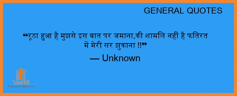 रूठा हुआ है मुझसे इस बात पर जमाना,की शामिल नहीं है फितरत में मेरी सर झुकाना !!