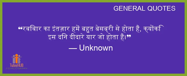 रविवार का इंतज़ार हमें बहुत बेसब्री से होता हैं, क्योंकि इस दिन दीदारे यार जो होता हैं।