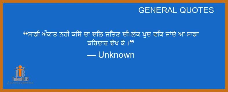 ਸਾਡੀ ਔਕਾਤ ਨਹੀਂ ਕਿਸੇ ਦਾ ਦਿਲ ਜਿੱਤਣ ਦੀ।ਲੋਕ ਖੁਦ ਵਿਕ ਜਾਂਦੇ ਆ ਸਾਡਾ ਕਿਰਦਾਰ ਦੇਖ ਕੇ ।