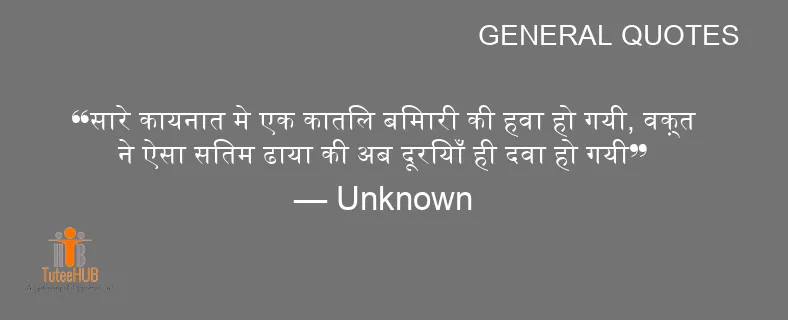 सारे कायनात मे एक कातिल बिमारी की हवा हो गयी, वक़्त ने ऐसा सितम ढाया की अब दूरियाँ ही दवा हो गयी
