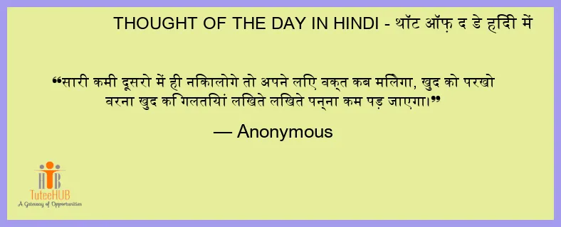 सारी कमी दूसरो में ही निकालोगे तो अपने लिए वक्त कब मिलेगा, खुद को परखो वरना खुद कि गलतियां लिखते लिखते पन्ना कम पड़ जाएगा।