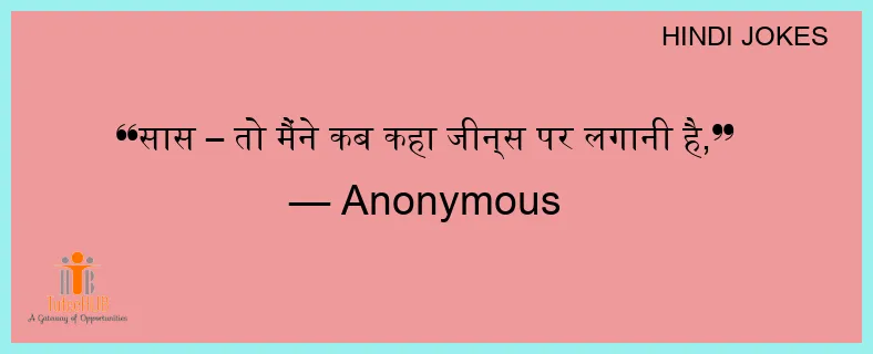 सास – तो मैंने कब कहा जीन्स पर लगानी है,