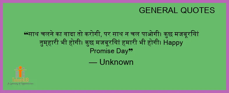 साथ चलने का वादा तो करोगी, पर साथ न चल पाओगी। कुछ मजबूरियां तुम्हारी भी होगी। कुछ मजबूरियां हमारी भी होगी। HAPPY Promise Day