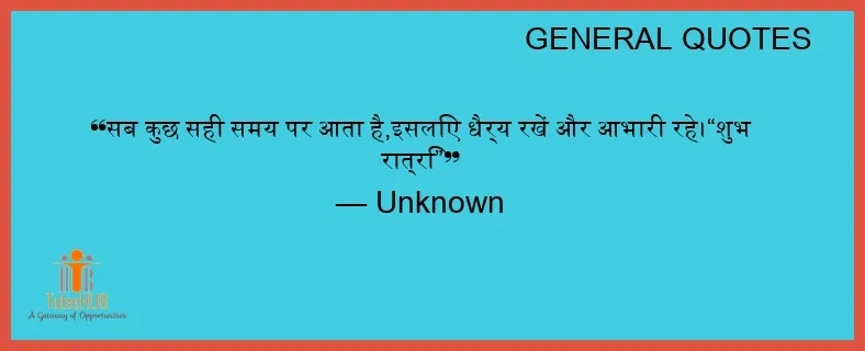 सब कुछ सही समय पर आता है,इसलिए धैर्य रखें और आभारी रहे।“शुभ रात्रि”