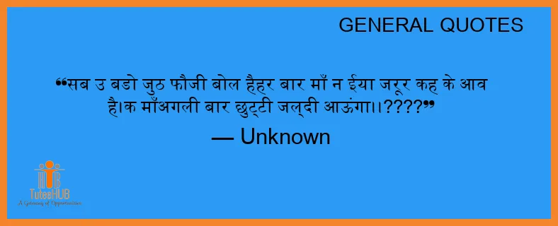 सब उ बडो जुठ फौजी बोल हैहर बार माँ न ईया जरूर कह के आव है।क माँअगली बार छुट्टी जल्दी आऊंगा।।????