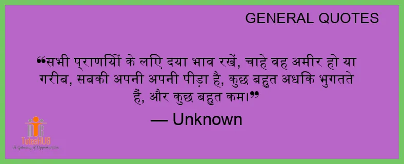 सभी प्राणियों के लिए दया भाव रखें, चाहे वह अमीर हो या गरीब, सबकी अपनी अपनी पीड़ा है, कुछ बहुत अधिक भुगतते हैं, और कुछ बहुत कम।