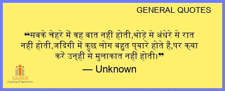 सबके चेहरे में वह बात नहीं होती,थोड़े से अंधेरे से रात नहीं होती,जिंदगी में कुछ लोग बहुत प्यारे होते हैं,पर क्या करें उन्हीं से मुलाकात नहीं होती।