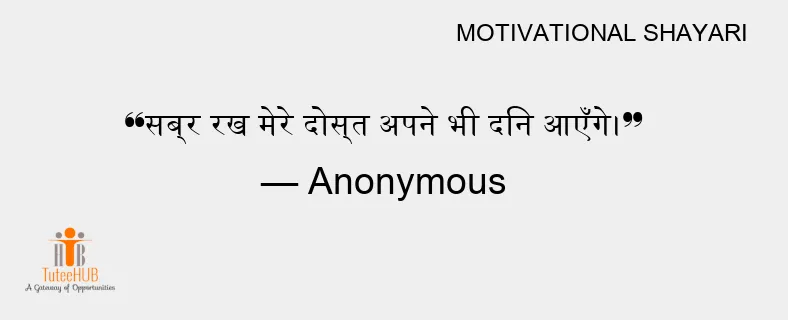 सब्र रख मेरे दोस्त अपने भी दिन आएँगे।