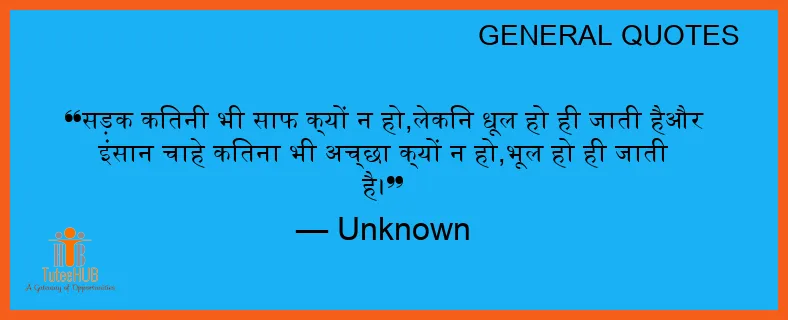 सड़क कितनी भी साफ क्यों न हो,लेकिन धूल हो ही जाती हैऔर इंसान चाहे कितना भी अच्छा क्यों न हो,भूल हो ही जाती है।