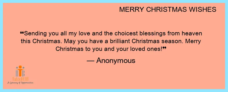Sending you all my love and the choicest blessings from heaven this Christmas. May you have a brilliant Christmas season. Merry Christmas to you and your loved ones!