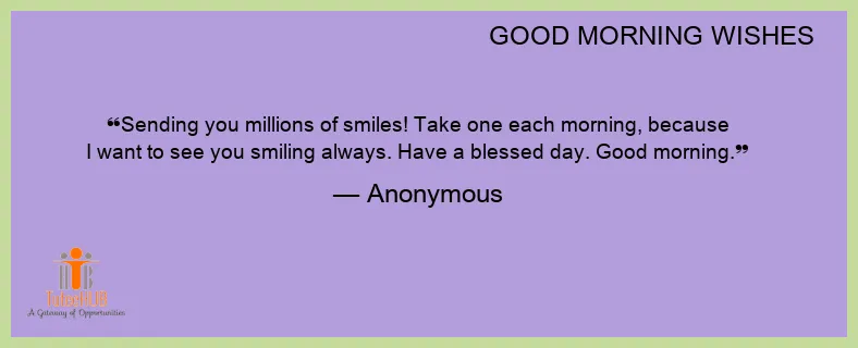 Sending you millions of smiles! Take one each morning, because I want to see you smiling always. Have a blessed day. Good morning.