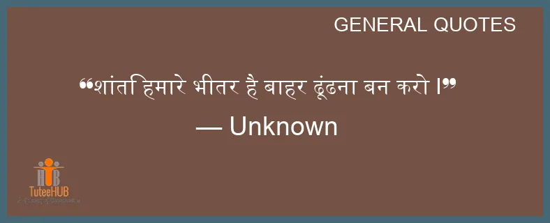 शांति हमारे भीतर है बाहर ढूंढना बन करो I