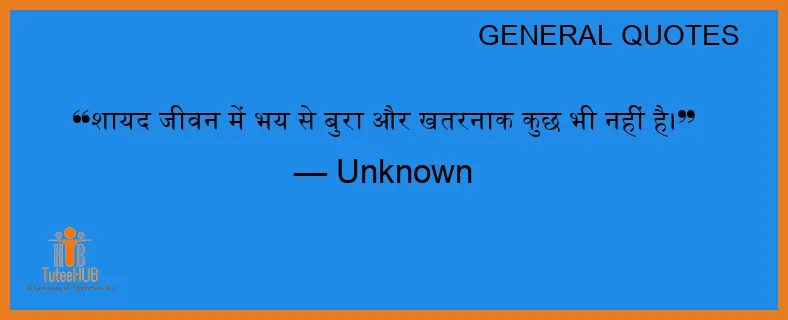 शायद जीवन में भय से बुरा और खतरनाक कुछ भी नहीं है।