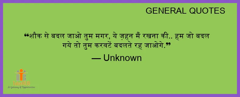 शौक से बदल जाओ तुम मगर, ये ज़हन मैं रखना की.. हम जो बदल गये तो तुम करवटें बदलते रह जाओगे.
