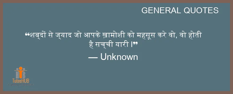 शब्दों से ज्याद जो आपके ख़ामोशी को महसूस करे वो, वो होती है सच्ची यारी I
